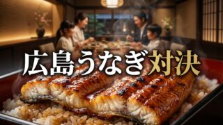 妻の誕生日に失敗したくないあなたへ。広島のうなぎは「関東風」と「関西風」が混在する特殊エリア。老舗「こだに」と新鋭「うな輝」を徹底比較し、家族の笑顔を守るベストな一軒をAIが提案します。